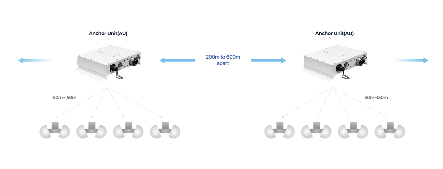 A single Main Unit (MU) covers up to 10 km Expandable modular Anchor Units (AU) as needed